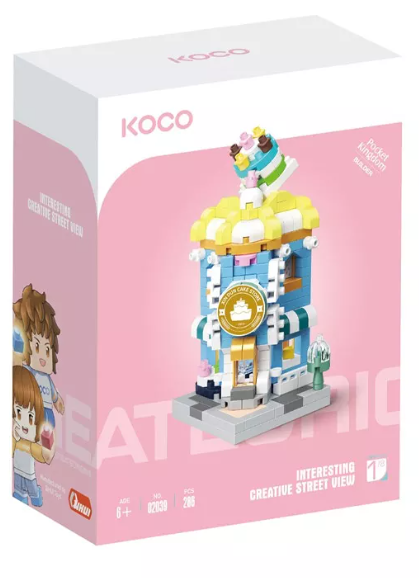 Este set de construcción Koco de 286 piezas permite recrear una pastelería utilizando mini-bricks resistentes y de colores vivos. Durante el montaje, niñas y niños podrán construir cada parte del edificio, crear historias y disfrutar del juego de rol, mientras desarrollan habilidades clave de forma divertida.