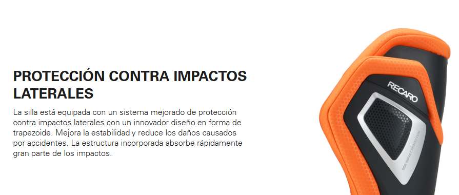 La silla está equipada con un sistema mejorado de protección contra impactos laterales con un innovador diseño en forma de trapezoide. Mejora la estabilidad y reduce los daños causados por accidentes. La estructura incorporada absorbe rápidamente gran parte de los impactos.