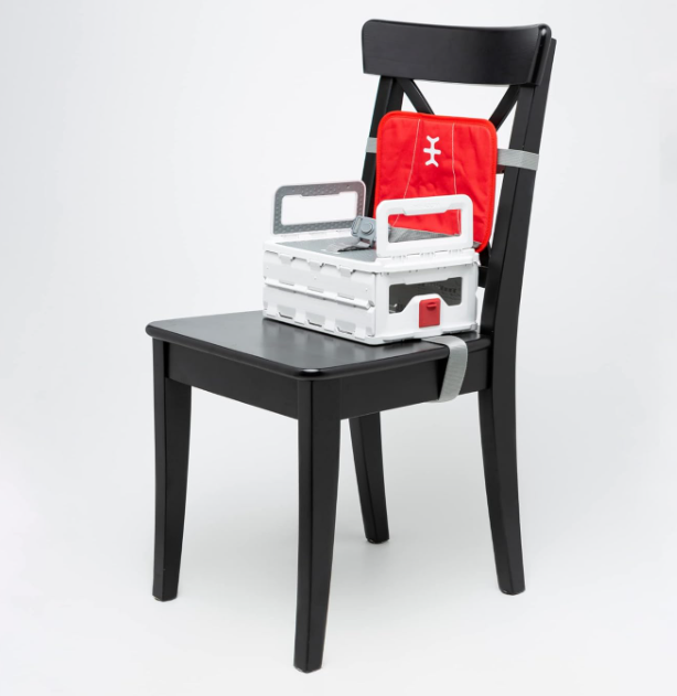 Su estructura interna rígida convierte una silla común en una trona segura, mientras que el arnés de 3 puntos mantiene al niño bien sujeto durante la comida.
